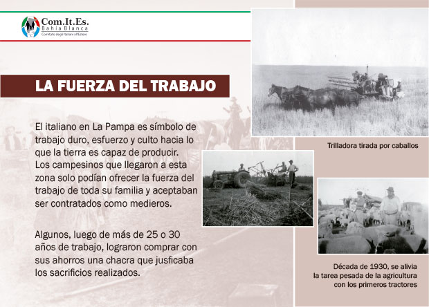 Las dos terceras partes de los italianos que llegaron habían trabajado en Europa en tareas rurales, por ese motivo La Pampa fue el lugar elegido por los migrantes.
