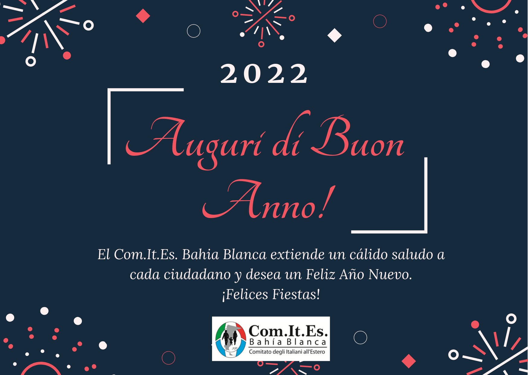 El Comité de los Italianos en el Exterior, circunscripción consular Bahía Blanca, tiene el agrado de saludarlos y desearles los mejores augurios para finalizar este año con paz y buenos deseos en el nuevo año que comienza. ¡Feliz año nuevo!